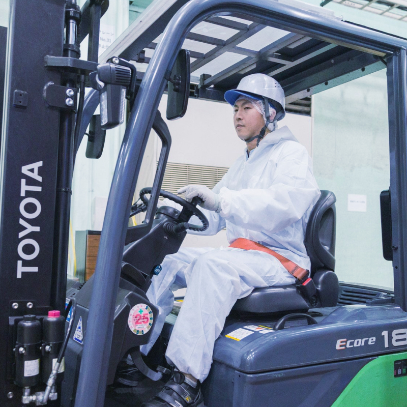 樹脂補充や梱包作業を進めつつ、生産ライン全体の安定稼働をサポートします。