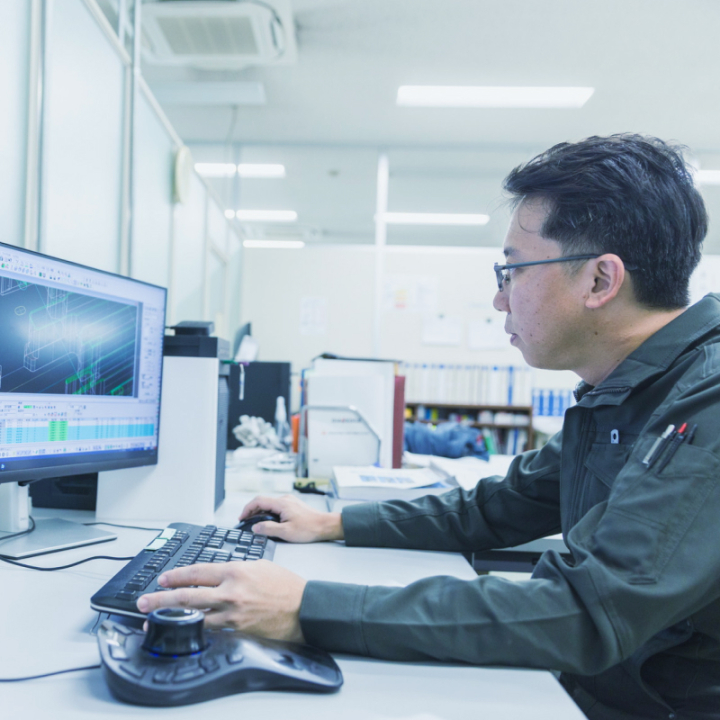 仕様の打ち合わせから設計、材料・部品の手配、加工指示まで、金型製造の起点となる業務を担当します。自身が設計した金型が高品質な製品に直結する達成感を味わえ、加工、組立、試作の各工程で社内外の多くの人と協力しながら一つのものを完成させる喜びがあります。最新の3次元CADシステムを駆使し、課題解決を重ねながら、ものづくりの原点に携わることができる仕事です。