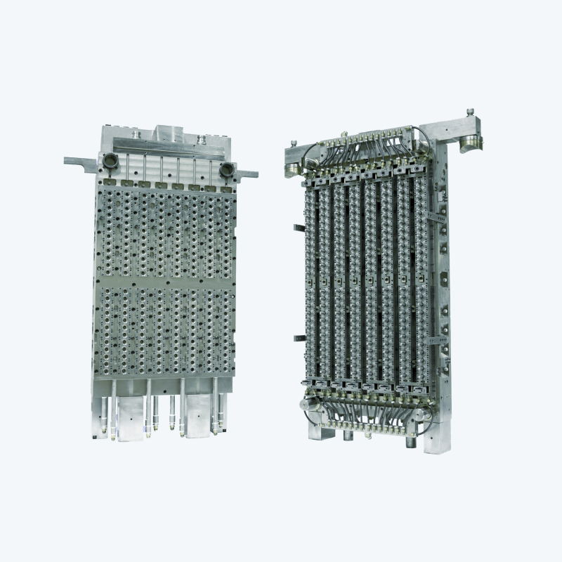 53年の豊富な歴史と実績を誇る金型製造販売事業は、当社の根幹をなしています。創業当初は海外メーカー(カナダ)との技術援助契約からスタートし、着実に技術を蓄積してきました。現在では社内一貫生産体制を確立し、グローバルな品質基準に応えるものづくりを展開しています。食品容器(デザートカップ、マーガリン容器)、医療·車両関連部品、光学レンズなど多様な分野で高品質な金型を提供しております。